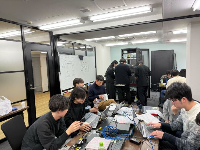 具体的なカリキュラムとしては、ルーター・スイッチの実践演習やサーバー研修(SSHサービスの設定など)を行っており、私自身もネットワーク機器の設定やOSPFの自動化動作の確認などを実際に手を動かしながら行っていました。